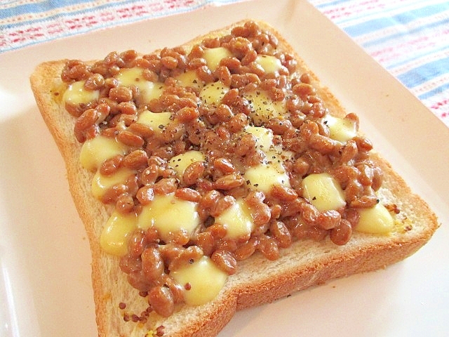 ベビーチーズとオリーブオイルの納豆トースト レシピ 作り方 By ちえ Sキッチン 楽天レシピ